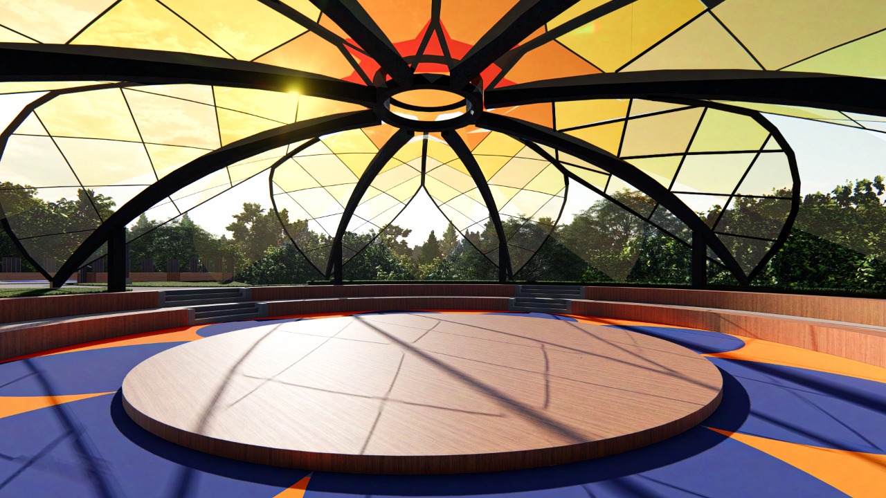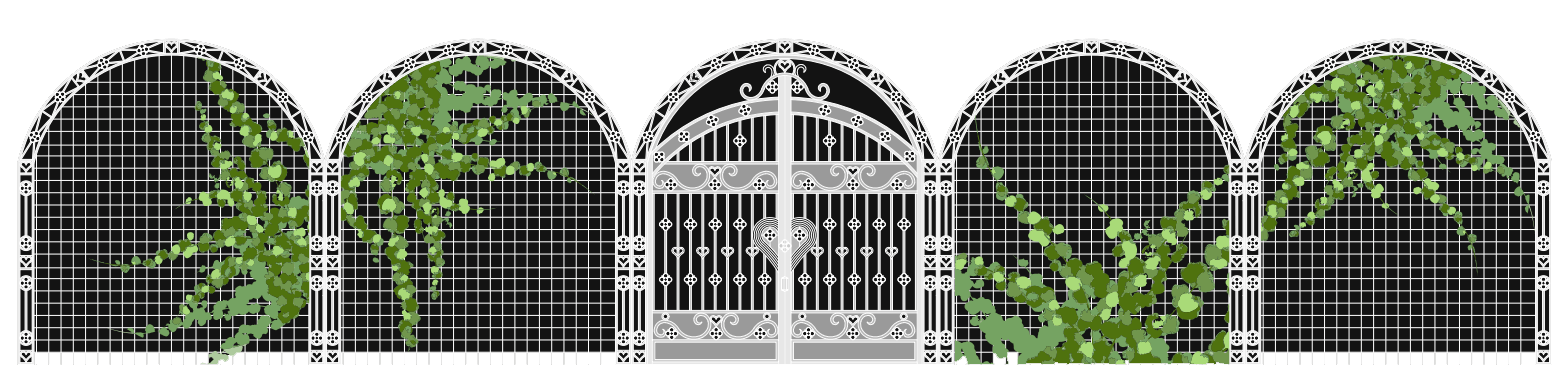 Toda a estrutura deste espaço trabalhada em metal, desde as grades e portões, até o gazebo central, formando uma arquitetura que se complementa por um dos mais belos mosaicos de piso que temos trazendo o ar clássico ao local.